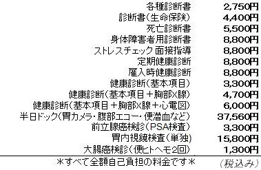 肺がん検診(胸部X線写真)、胃がん検診(胃カメラ)、大腸がん検診(便潜血)、他