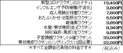 費用:65才以上の方は、接種券をご持参ください。(自己負担額は接種券に記載されています)